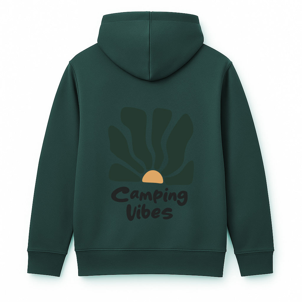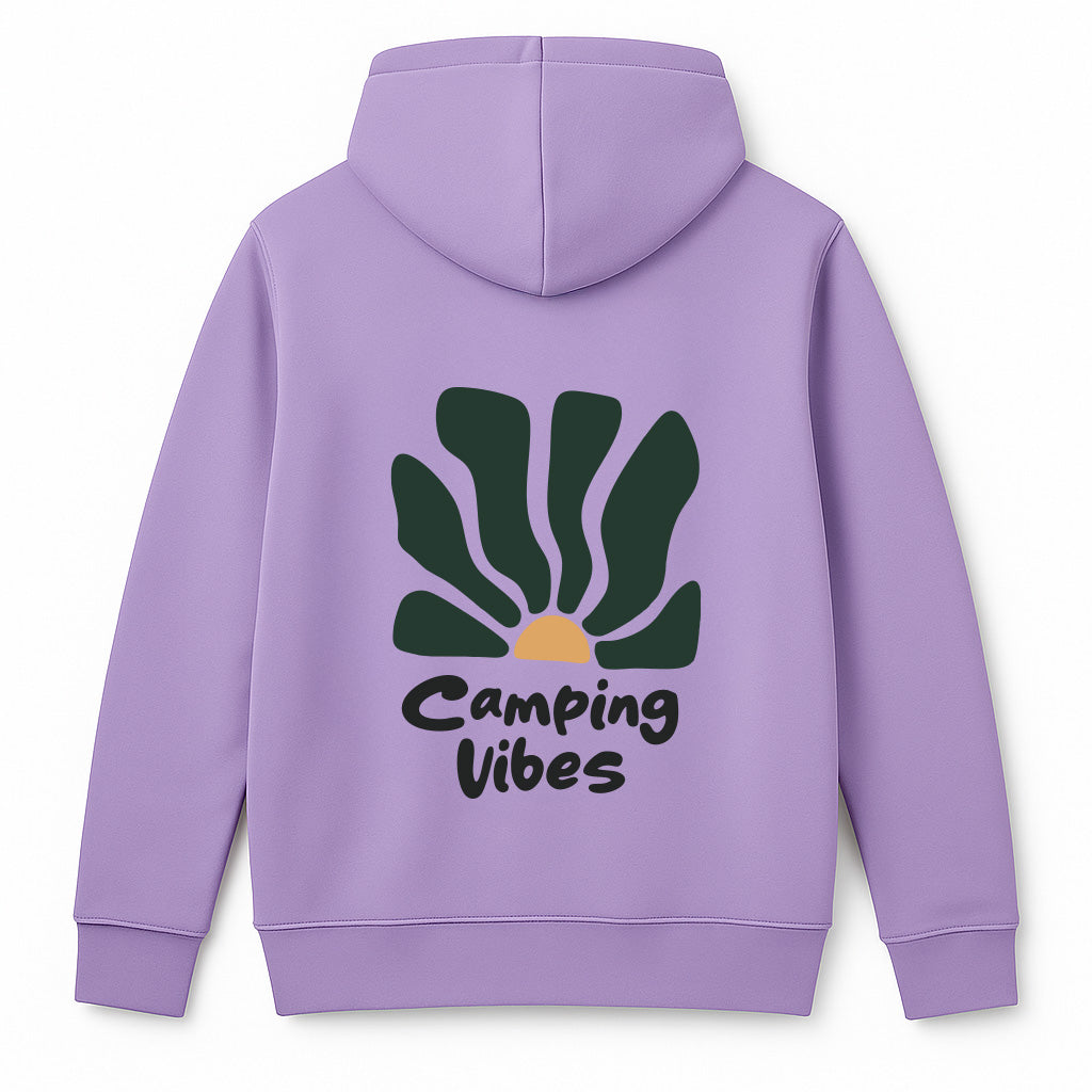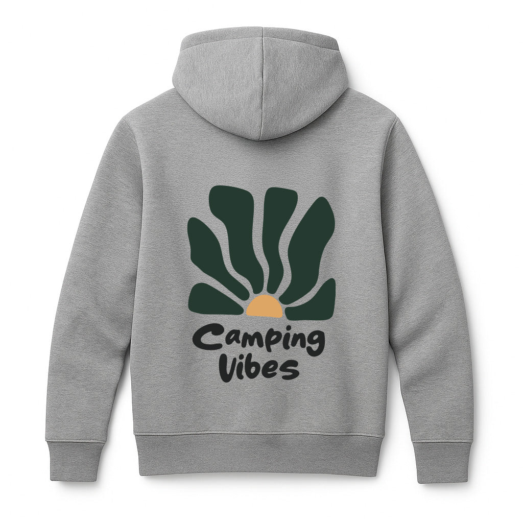Aufdruck: „Camping Vibes“ auf der linken Brust und auf dem Rücken.
